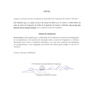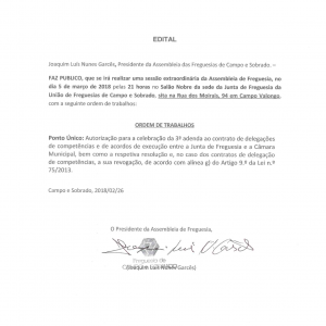 A Junta de Freguesia de Campo e Sobrado informa que a Reunião Pública agendada para hoje foi adiada para amanhã […]