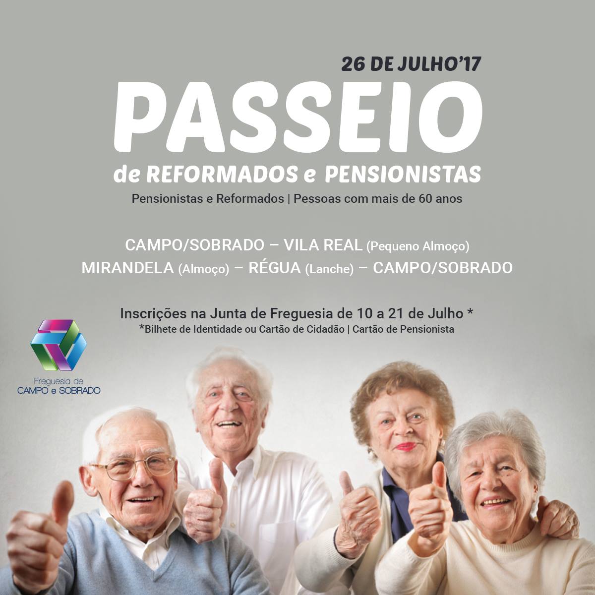 Julho 4, 2017Janeiro 24, 2018 Passeio de Reformados e Pensionistas | 26 de Julho Inscrições na Junta de Freguesia